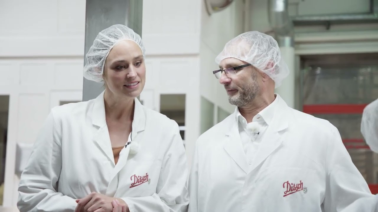 Im Anschluss verlassen wir den Markt und machen uns auf den Weg zur Produktionsstätte von Ditsch. Dort erhalten wir einen exklusiven Blick hinter die Kulissen der industriellen Brezelherstellung. Vom Ansetzen des Teigs über das typische Schlingen der Brezelform bis hin zum Laugenbad und der Schockfrosten, sowie der Verpackung – Werksleiter Georg Christoph führt uns Schritt für Schritt durch den gesamten Prozess.