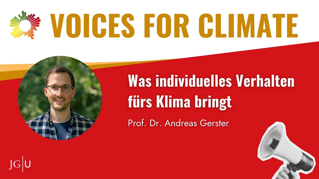 Wie viel kann jeder Einzelne zum Klimaschutz beitragen – und was bringt das fürs große Ganze? In diesem Vortrag geht es um wichtige klimapolitische Maßnahmen in Deutschland und Europa und darum, wie sie die Wirksamkeit persönlichen Verhaltens beeinflussen. Es wird gezeigt, wo mehr individueller Einsatz Emissionen senkt – und wo Emissionen vielleicht nur an andere Stellen verschoben werden. Der Vortrag diskutiert, wie man als Einzelperson im Rahmen aktueller Klimapolitik wirksam handeln kann.