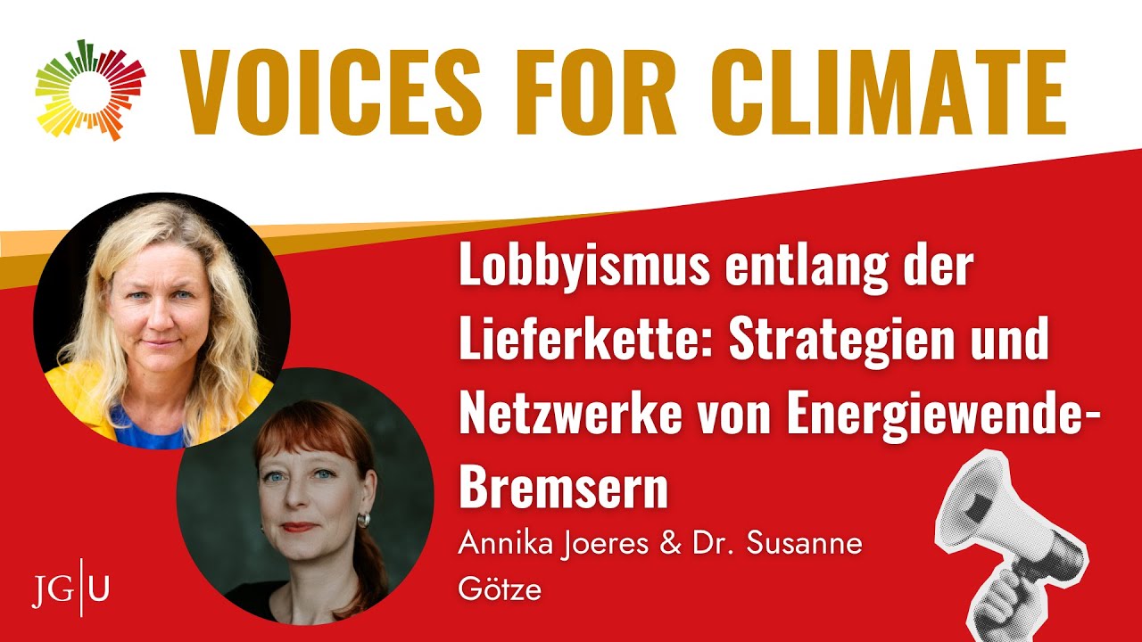 Erneuerbare Energien produzieren Energie vor Ort – aber sie gefährden auch das alte Geschäftsmodell mit Öl und Gas. Die Investigativ-Journalistinnen Susanne Götze und Annika Joeres haben jahrelang recherchiert, wer aus Profitgier die Energiewende gefährdet und Deutschland damit politisch erpressbar macht. Wer sichert sich maximale Profite – während die Allgemeinheit einen hohen Preis dafür zahlt? In ihrem Buch -Die Milliarden-Lobby- zeigen sie beispielsweise, wer die Kampagne gegen das Heizungsgesetz orchestrierte und warum Wasserstoff gerade von vielen Lobbyisten für die Verlängerung des fossilen Geschäftsmodells genutzt wird. Und auch mit der neuen Regierung kommen alte Lobby-Erzählungen und Energiewende-Bremser wieder Aufwind. In der Vorlesung zeigen Joeres und Götze auch, wie Deutschland unabhängiger werden kann von Öl und Gas- Importen.